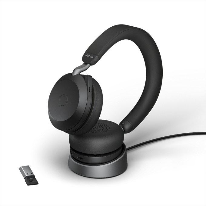 Jabra Evolve2 75 Link380a UC Stereo Stand ANC Black Bluetooth NC Headset inkl. Stand & Link 380 USB-
